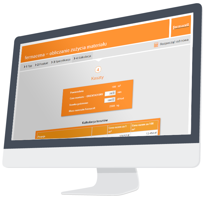 Firma Fermacell Systemy suchej zabudowy nie ponosi odpowiedzialności za wynik kalkulacji cenowej, ani za materiały wykorzystane do opracowania kalkulacji.